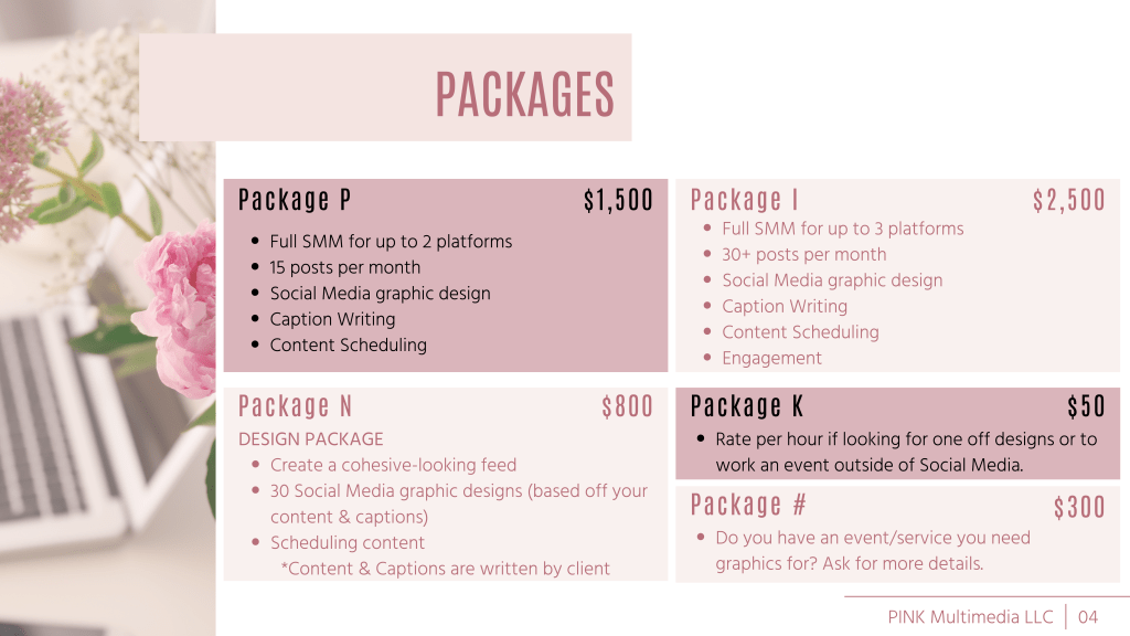 Our packages include services such as content creation, scheduling, analytics, and community management. We work closely with our clients to understand their brand voice and create content that resonates with their target audience.